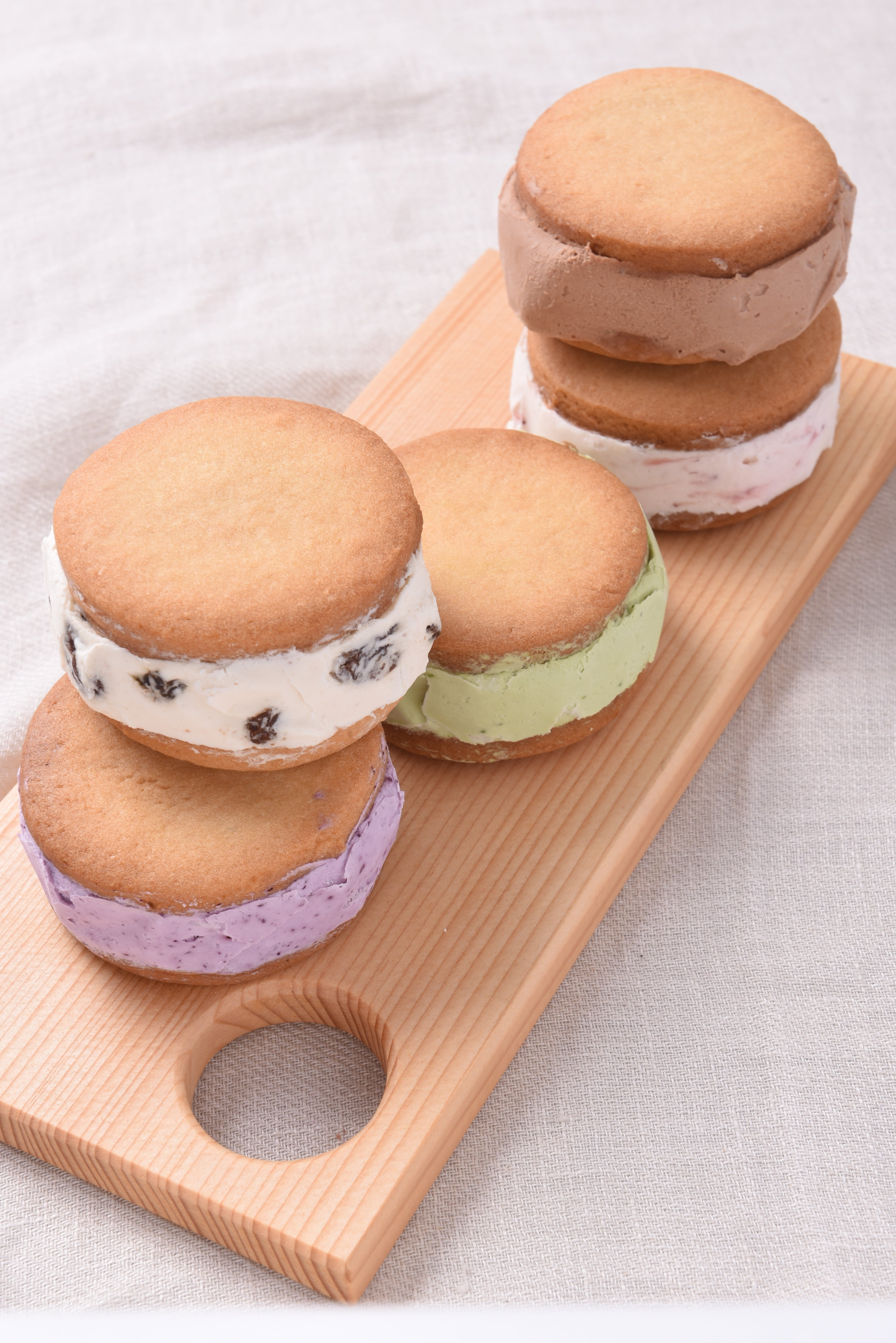 3種類の味の生チーズを焼きたてサクサクのクッキーでサンドしました!!